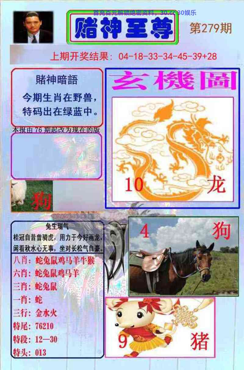 273期:七肖 | 兔虎龙马鸡狗蛇 | 开虎04准 |
