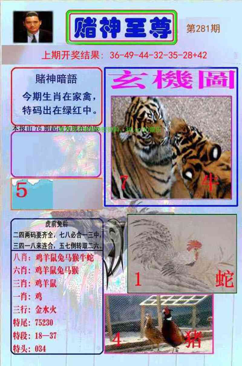 281期:九肖 | 兔虎鸡猴羊鼠龙蛇马 | 开羊47准 |