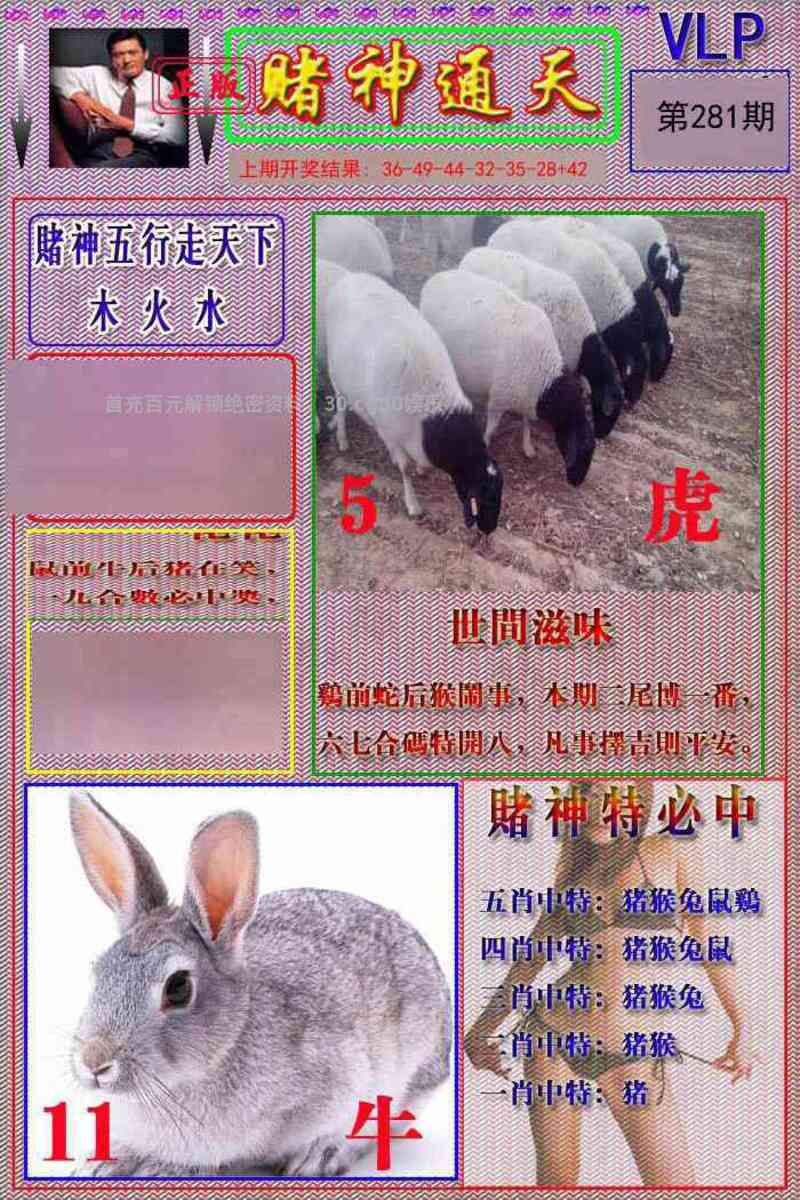 281期:六肖 | 兔虎鸡猴羊鼠 | 开羊47准 |